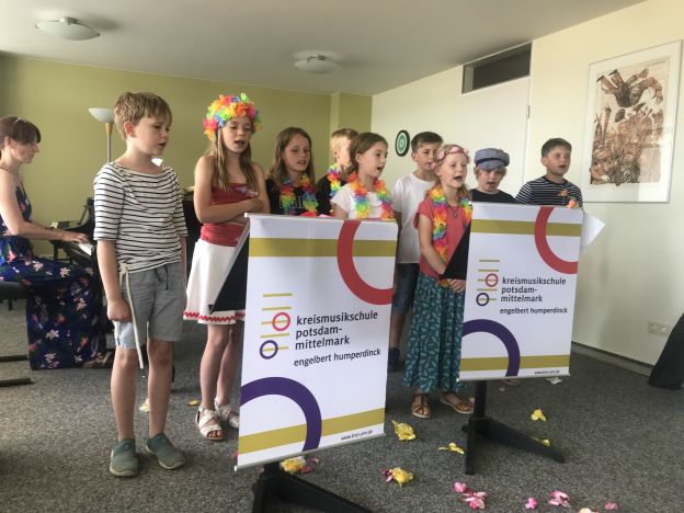 Kanons führen an mehrstimmiges Singen heran und trainieren das Gehör. Wir singen, angefangen von Volksliedern, über bekannte Filmmelodien bis zu leichten Popsongs eine bunte Mischung. Auch leichte fremdsprachige Lieder können schon gesungen werden.