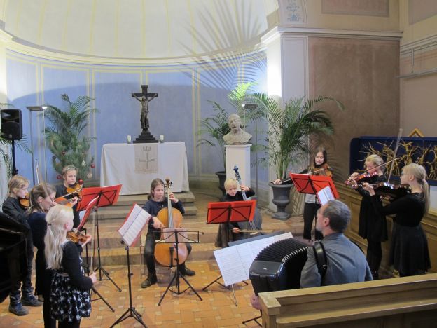Zum 1. Advent haben Schülerinnen und Schüler der Kreismusikschule der Region Werder-Beelitz im Tiedemannsaal (Beelitz) eine besondere musikalische Zusammenstellung zum Besten gegeben. Barocke Klänge wechselten sich ab mit (spät-)romantischen Solobeiträgen am Klavier und folkloristischen Liedern in kleinen Ensembles. Aufgelockert wurde immer wieder mit Weihnachtsliedern, einem Piazzolla-Tango und belebenden Klezmer-Melodien. Zum Abschluss ertönte das Saxophonensemble mit drei Christmas-Songs und sorgte für einen beschwingten Ausklang und zugleich Auftakt für die beginnende Adventszeit.