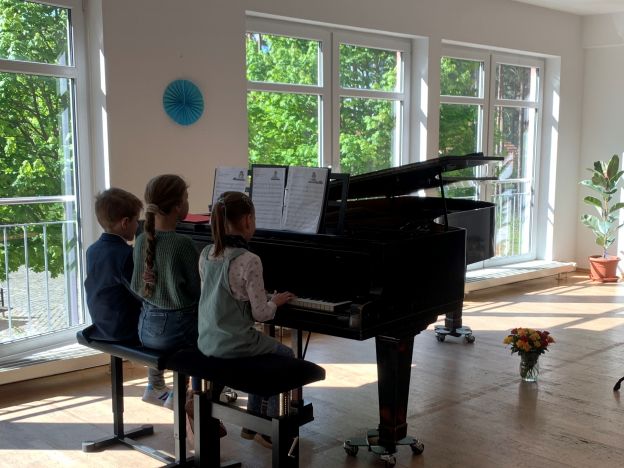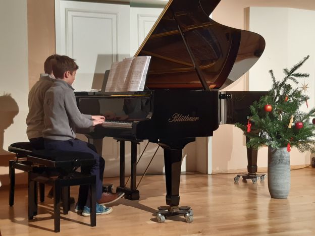 Schülerinnen und Schüler der Region Fichtenwalde, Werder und Kleinmachnow musizierten einzeln aber auch zu dritt am Klavier oder zu viert im Ensemble. Der Blüthner-Flügel mit seiner enormen Länge bot den Zuhörenden einen seltenen, intensiven Klang.