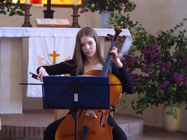 Die Pfarrerin Almuth Gaedt spielte selbst einen musikalischen Auftakt auf der Violine, um das Publikum willkommen zu heißen, bevor dann Schülerinnen und Schüler der Regionalstelle Werder (Havel) ein umfangreiches Konzertprogramm zum Klingen brachten - gemischt mit buntem Vogelgezwitscher aus dem Kirchgarten.