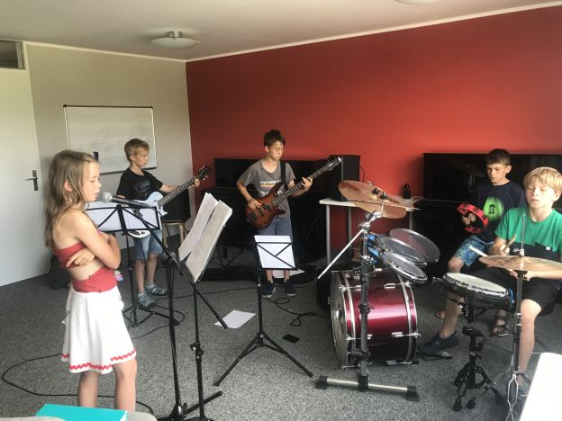 Im Schnupperunterricht konnten Kinder mit ihren Eltern verschiedene Instrumente kennenlernen, sie selbst einmal in die Hand nehmen und erste Töne probieren. Zur Auswahl standen Geige, Bratsche, Cello, Kontrabass, Klarinette, Gitarre, E-Gitarre, Saxophon, Trompete, Querflöte, Blockflöte, Akkordeon und Klavier. Sogar eine Bandprobe fand statt!